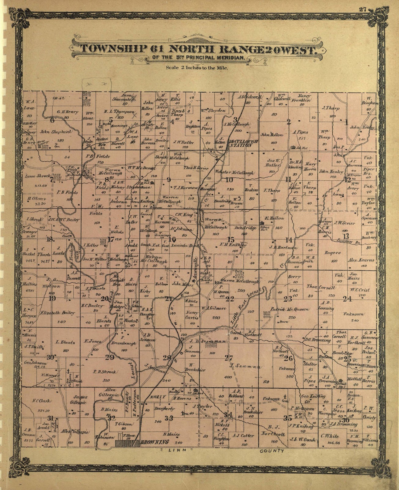 Source: “An illustrated historical atlas of Sullivan County, Missouri, 1877,” Plat Maps of Missouri, 61N 20W, image 27, The State Historical Society of Missouri (http://www.digital.shsmo.org : accessed 13 June 2022); Edwards Brothers of Missouri, 1877, Philadelphia, PA.